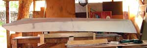 The forward chine runs parallel to the waterline and slightly below. I used xynole polyester, a 4 oz. fabric that resembles cheesecloth, for sheathing. System 3 epoxy primer (and resins) is well worth the price.