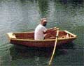 The D-4 sailing dinghy performs remarkably well in heavy weather. Although I have to be a little cautious with breaking seas, I regularly sail the D-4 in 15-20knot winds but have been caught in squalls with 40+ knot winds. I do take a plastic cup and a sponge to bail with. Generally all I get is spray and an occasional wave slap that spills into the cockpit. Even if the cockpit were filled the boat would float with the gunnels above water due to the three watertight compartments contained within the 2 seats and bow area of the boat. I have not tried to mount a motor on the D-4 but she sails & rows easily. I figured the epoxy worked so well on the boat that I might as well make the oars as well. An 8’ 2”x2” and a piece of scrap plywood made one of the prettiest $3.00 oars you’ll ever see. I made the oars approximately 7’ 5” long so I could really get a stroke each time I row and still be able to stow them inside the boat. Consequently I can easily row much faster than the plastic dinghies sold in the local “monopolistic” boat supply store. The oarlocks should be placed just aft of where your knees reach when seated in the rowing position. The handles should nearly touch when the oars are positioned straight abeam. Finally, the longer the oar is the better for ease of rowing.