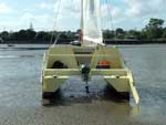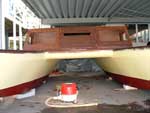 The rudder gudgeons were fabricated in fibreglass so the rudders could be moved outboard to line up with the outer sides (also mentioned in the builders notes)