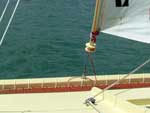 I originally had a forward beam for the forestay and jib fitting, in stainless steel but it weighed 29 lbs, thinking that was too heavy I made a hollow box section in l2mm(1/2inch) glassed with biaxial fibreglass cloth, when finished it weighed l3lbs and has proved satisfactory.