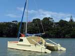 I started building my hot Chili catamaran design in March 06 and finished it about 9 months later, this involved most weekends and the odd day midweek. I actually liked the look of boat profile and and thought it would be quick and easy to build and a reasonable sailboat. Hot Chili has fulfilled all my expectations. It certainly goes better than any of my previous monohulls of similar size. The boat was built to plan with a few minor changes to suit my needs. Everything on the boat went together easily and I had no real problems with the construction, (having said that I am a 70 year old retired boatbuilder) I think any average person could build one.