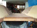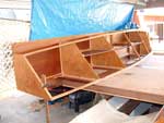 The cabin front was constructed in 3 sections with a wooden framework rebated to take 6mm ply, which I had on hand. The cabin centre section was brought forward about 40mm (1-1/2inches) trying to avoid too flat a front.