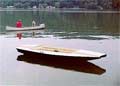 I wouldn't mind you posting my note with the email address. We may find more information. I remeasured the hull. It is 11'1" long and between 9 and 11" deep. The mast hole was cut by a 1.25" bit in 3" stock 26" from the bow as it is now. I've attached a few pictures of its current state. I have all the trim, a rudder and dadgerboard, which is warped and needs redoing.