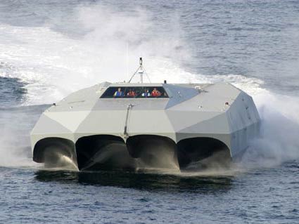 "Stiletto's hull, with curvy planing tunnels that displace the energy of waves and lift the vessel off the water, is one of its key features being closely evaluated at sea," the newspaper said.