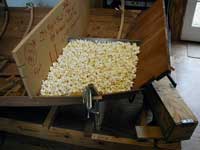 I was wondering how to calculate the volume of a section of my under-construction Melonseed that I was thinking about closing off for flotation. I didn't have Ping-Pong balls or Styrofoam 'peanuts' but then realized I had popcorn and a hot air popper. I partitioned off the area in question and used a half gallon container as a volume measure to fill the section to be studied. I used the heat from the popper to help warm the workshop and cleaned up afterward with my shop vac. An internet site told me that a gallon is equivalent to 0.1337 cubic feet. Voila!