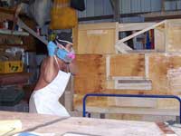 Murray Taylor, in New Zealand, sent these photos of Little Laker (the 14'6" car topper power boat and Lutra Laker's little sister) with her garboard in place and ready for the fiber glass tale and fiber glass cloth.