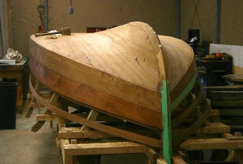 Rich Wilmore's class, in the Large shop, has the bottom planked (and long-boarded) and several of the mahogany side planks on the 1934 Monk runabout.