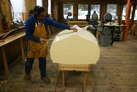 Over in the Small Craft Shop, Tim Lee's class has the first of two Davis boats off the molds. This one is a trim 14-footer. The molds have been set up again for a 16-foot Davis Boat. Davis boats were originally built in Metlakatla AK beginning in 1905.