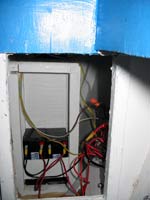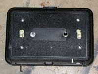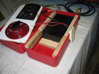 Where I failed, Eric Larson succeeded. He came up with a pretty good el-cheapo switch box. This is a small discount store utility box and common household light switches. He even stuck in a little accessory fuse block. Here it is removed while I was remodeling the hull.