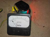 Measuring the hot resistance takes a little more doing than the cold resistance. One approach is to skip the resistance and measure the amperage directly. Most people don’t have a big enough ammeter to get a useful reading. I didn’t until I dug through a box of electrical parts I had forgotten I had. Lo and behold, I had the perfect meter on hand all along! So I wired it up in series with my battery box and a few lights.