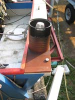 A coffee can does the job here, held accurately in place by being bolted against the coaming. It is easiest to get this right with a box jig similar to what we used to adjust the retro style side lights in a previous article.