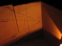 How many of you noticed my error above? I used the angle from Electron’s cabin side instead of AF4’s! So I used my protractors to redraw the lines correctly. Now the light will go a few degrees too far astern. Since we need to block out some of the light going forward, we’ll fix that with the same method.