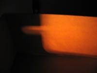 Not much to it, is there? This is just a cardboard box with the light mounted on it, and markings on the sides to denote where the light should cut off. With the desired locations marked, we change the aperture until the light cuts off at the lines.
