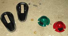 The main trouble with converting lights to LED power is getting them aimed correctly. Fortunately, you can do this using the box jig shown above. Better yet, with careful positioning you probably wouldn’t need to mess with cutting the shells or painting the lenses.