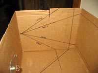 Remember that the opening on the light is not right at the side of the box. The baseline from which the angle is measured is defined by the distance between the front of the light’s opening and the cardboard – 1 cm in this case. This is not such a big deal once it’s on the boat, but distances are pretty short inside a box, so it is best to account for it. Be sure to use a square, and to first check the box itself for square.