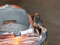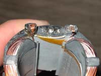 There was one wrinkle, though. The field terminals were encased in glue and the only way to get to them was removing the field assembly. This meant banging the case against the vice to hammer the coil out. Unfortunately, this broke one of the connectors.