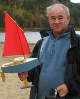 The key thing about Graham’s boats is the foam core hull construction method which makes building them very easy and adds flotation that makes them (I am told) virtually unsinkable. His `company’ (I suppose you could call it that) is Scalesailing and his email is scalesailing@sbcglobal.net.