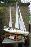 Built at 1:28 full size scale by Sells as Cousteau’s Antarctic Explorer for Richard Howard of England who has a large collection of sailing models, he produced the model from plans drawn by Francois Couture, the model coming out at 51” in length. Highly detailed with many parts including the deck edge rails made of brass, Charles Sells who is an avid modeller and model sailor achieved acclaim for the completed model of a boat that is still dear to the hearts of New Zealanders, but in other ways, a sad reminder of Sir Peter Blake’s exit from this world.
