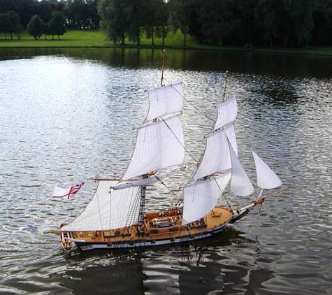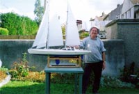 Above is Martin Davis (originally of Jamaica) who some four years ago set up MODEL BOAT MAYHEM, an independent model boat website on the internet, a site that although mainly covering power boats does include those under sail. Light-hearted, it fills a need for all grown men and women who enjoy building and playing with model boats. Visitors to the website have increased dramatically and today there is an active membership of over 2,000, but most important it is totally free to those who visit. A power boat and model speedboat enthusiast, Martin is helped by his colleague who simply goes by the name of “Bradders’. Although it is principally on powered boats it is really worth visiting, so just punch in `Model Boat Mayhem’ and your search engine will do the rest. In the third photograph above, no connection, (wait a moment, it was on Martin’s website that I found and with his help made contact with Brian Clark, the builder of HMS Killingworth seen under sail).