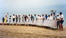 A fleet on the sands of Toberua Island, Fiji (below)