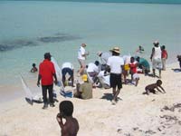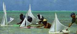 In the Turks and Caicos Islands at a beach on Middle Island they periodically race model yachts in the shallow surf. This first photograph (above) is almost like a painting and shows the skippers running behind the sterns of their non-radio controlled craft, perhaps to keep them on course, perhaps even to ensure that they don’t suddenly veer off and sail away to another island. There are a few regattas every year and I guess it pays to be fit !   Here is your Geography lesson (in case you have never heard of these islands) They are 575 miles South-East of Miami and they cover 193 square miles of the Atlantic ocean. By the way. the boats are carved from large branches of the gum-elemi tree and each sloop has it’s weatherboard in order to stabilize it in the ocean water. A simple form of model yachting at little expense and as I have always been saying, yet another form of model sailboating