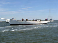 Andrew Charters of Meggett in South Carolina, USA has added a fisherman’s staysail to his favourite among all his schooners. Elizabeth Silsbee, the new sail seen above drawing well. This leads me to show you in the second photograph which he took, the new 150 ton, 140’ pilot schooner Spirit of South Carolina after she was launched. The boat has got such beautiful lines I keep hinting to Andrew that she would make a lovely RC model. The other two photographs show a fine display model already built of the boat, one Bill Baum of Brevard, North Carolina, the man who built the model, then the model itself. The South Carolina Maritime Heritage Foundation mission  is to offer a unique educational platform for students, to encourage responsibility and teamwork, and other attributes to become future leaders.