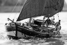 Harald built his model as a freighter and based it on the original built in 1896 at Wewelsleth in Germany by the famous shipwright, Gustav Junge. It took Harald 3 years to build and has 5 winches controlling rudder, leeboards, mainsail and mizzen The first photograph is by Hans Staal.