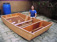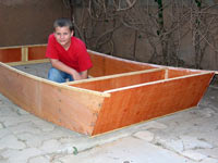 Thanks for great plans. The picture is my youngest child with his partially completed PDRacer. The second picture is of three partially completed hulls in the garage... visible in the back ground is the transom of my Marisol Skiff by Gifford Jackson.