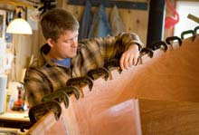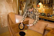 This technique works best using hardwood ply—mahogany, okoume—but getting good hardwood ply can be a problem in many parts of the country. Shipping can add to the cost, but hardwood ply works best with epoxy and unlike domestic softwood ply does not have to be sheathed with glass cloth. Hardwood ply also has very appealing face veneers, which is why so many of these boats are finished natural, and is also available in metric thicknesses allowing the builder to easily engineer the boat to suit usage. All lumberyards can special-order hardwood ply, but are often reluctant to deal with the hassle of small quantity orders. For consistent quality hardwood ply and small quantity shipping we have been pleased with Edensaw Woods, edensaw.com (800) 745-3336. Plywood is the heart of the boat and you usually get pretty much what you pay for with plywood.
