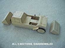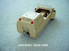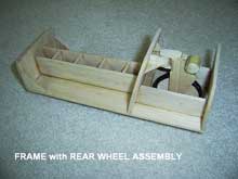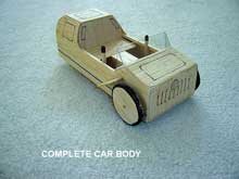 The entire vehicle is made of plywood, 1/2 inch for the frame members, and 1/4 inch for the body panels. The only exception, of course, is the steel mounting brackets for the wheel assembly mounts and the steering pinion and supports. Even these are easy to fabricate from stock materials.