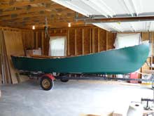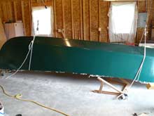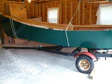 The Lake Skiff’s hull was planked and painted, but it was still upside-down on its sawhorses. What’s more, it was way too close to the back wall of the garage to get a trailer under it even after it was turned over. The best solution for this kind of problem is to enlist the help of muscular family members, friends, and neighbors. Unfortunately the only nearby family member was my wife, and she was on crutches from a bad fall. My neighbor, always the most helpful guy in the world, was out of town, and my best buddy, who had been involved in my boat projects since we built a canoe in his basement as high-schoolers, not only lived in far-off Connecticut, but had an even more decrepit back than mine. I was on my own.