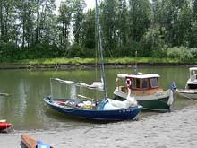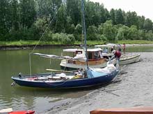 The board is steel plate, with the trunk offset to give better foot room. The inboard rudder swings up and can be removed by pulling a plug from its trunk.
