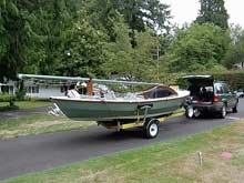 Among the requirements were: Light weight for good trailerability with normal family cars; shoal draft; good performance with sail, oars or a small outboard motor