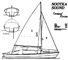 Nootka Sound is a Camping Cruiser. It was an original design for Bob Young of Lake Oswego, Oregon, but generally similar to several earlier designs. Among the requirements were: Light weight for good trailerability with normal family cars; shoal draft; good performance with sail, oars or a small outboard motor; and good rough water performance. The main requirement, though, was cruising facilities for two people, somewhat better than backpacking, if not up to luxury yacht standards.