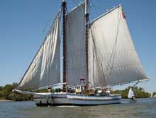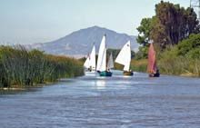 Day 3 The ALMA under sail, ascending the San Joaquin River, on the way to Hog Island. |