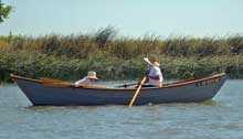 Another sharpie-skiff, this one 21’ and double-ended. Reputed to be the fastest boat in the fleet. |
