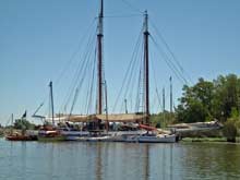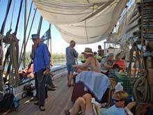Sun shades rigged over the ALMA’s deck; a warm afternoon anchored off Hog Island |