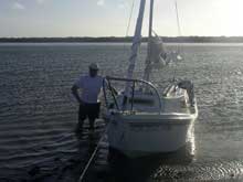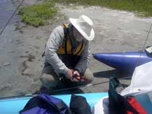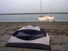 The next morning folks left early. There were at least three possible routes and more attention would need to be paid to navigating than on the previous two days. Here Tim Rinkevich readies his Core Sound 17. His sailing partner was Pete Brigatis.
