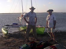 Finally, the sun set on a bunch of happy sailors. Even the mud could not dampen the spirits of Kevin and Laurent, the intrepid proa sailors.