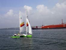 Two Hobie 18's passed us that afternoon - this one manned by Bob Johnson Jr. and Bob Johnson III. They were even towing a kayak!