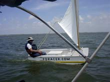 We stayed in a slip overnight but went around to the county park early Monday just in time to see John Wright heading out in his PDRacer. His was one of three of these diminutive boats to participate.