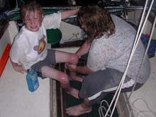 Some time after dark, the Miller family arrived at the Yacht Club with a sad story to tell, some sunburned kids and the news that they would withdraw. We were very relieved that they had made it.