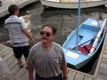 Mike Miller, my crew, and I walked over to a local restaurant for a farewell dinner after the bus ride on Sunday and there we met Bill Moffitt, his son Paul, and Stan Roberts. They were still working on a Mikesboat and a Piccup Pram in hopes of having them ready Monday morning. The Moffett's boat had never sailed at this point. The boat was built for this event and Bill kept a great blog.