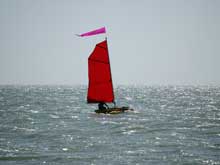 Martin Adams was among those leaving the County Park that morning. Unfortunately, he broke the rudder on his unique catamaran shortly after the start and had to return to Port M, hitch a ride to Magnolia Beach and then return to pick up his boat. That's bad luck - we hope he comes back next year.