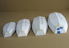 With the Nuthatch family I tried to match the visual appearance of one hull to the next. I didn't just add a proportional number to a measurement on the smaller hull to get the bigger one. There is a bit of variance in the widths and heights of all the panel members. Once I got a model that looked right to me visually and had the right amount of freeboard for safety and oarlock height, the rest of the time was spent getting the panel corners to line up and fit. Also to make sure that the panels could be laid out on standard sheets of plywood. But as the lengths and widths of the hulls increase, the number of sheets and the thickness's of the plywood also increased, as well as the cost. So does the cost of the extra epoxy, fiberglass tape and cloth, number of stainless screws, amount of paint and stain, and so on to a point of diminishing returns. (See the next to last paragraph)