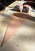 Possibly the trickiest part to make was the stem, which has a variable thickness and bevel for its entire length. We laminated a piece up to the maximum thickness, and then drew the stem full size.