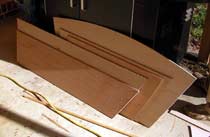 Lay out and cut all bulkheads and transom. Lay out the paper patterns for the sides, trace, cut out, and use as pattern to make the second side. Butt strap the side panels together to make the two sides. Time: about 5 hours