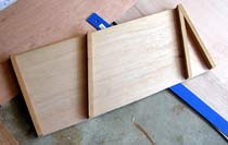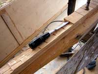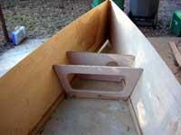 The framing on the bulkheads also extends below the bottom and must be beveled. Some of the as yet unfilled screw holes can be seen in the side panel. |