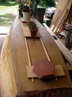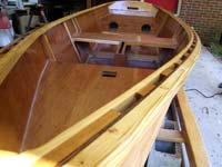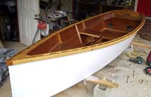 The finished gunwales are very elegant. Note also the framing for the midships seat has been installed as well as the breasthook. |