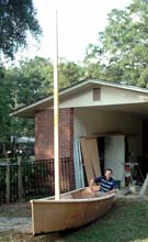 The proud owner sits in his Goat Island Skiff with the mast in place. Note, the hull had not been sealed, painted and varnished when this picture was taken. |